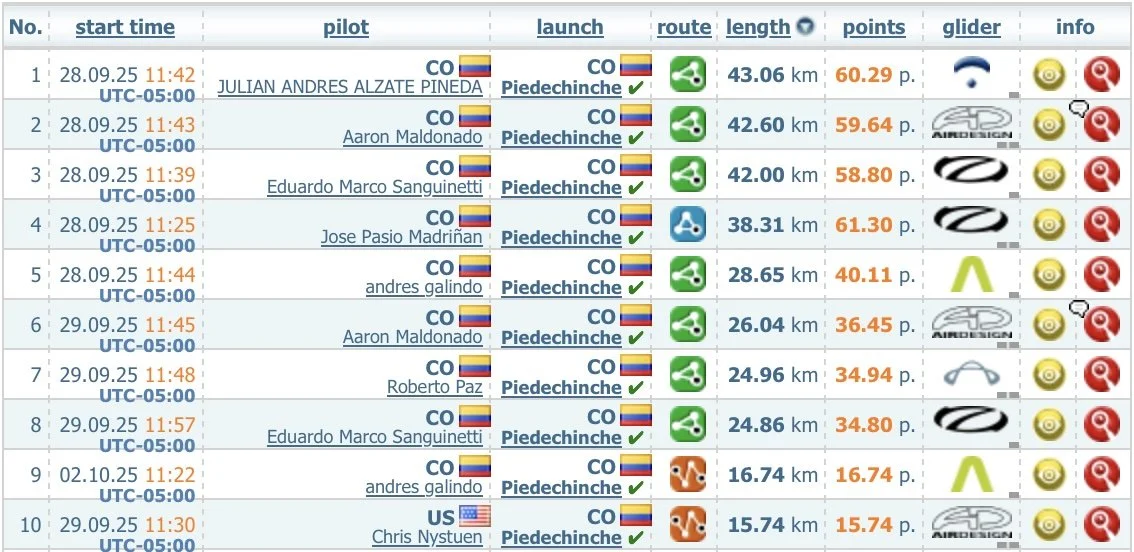 Highlights from the past 7 days (UTC-5). The Valle consistently produces strong XC conditions—not just in peak season, but year-round. Thinking about joining us? Your flight could be part of next week’s leaderboard.